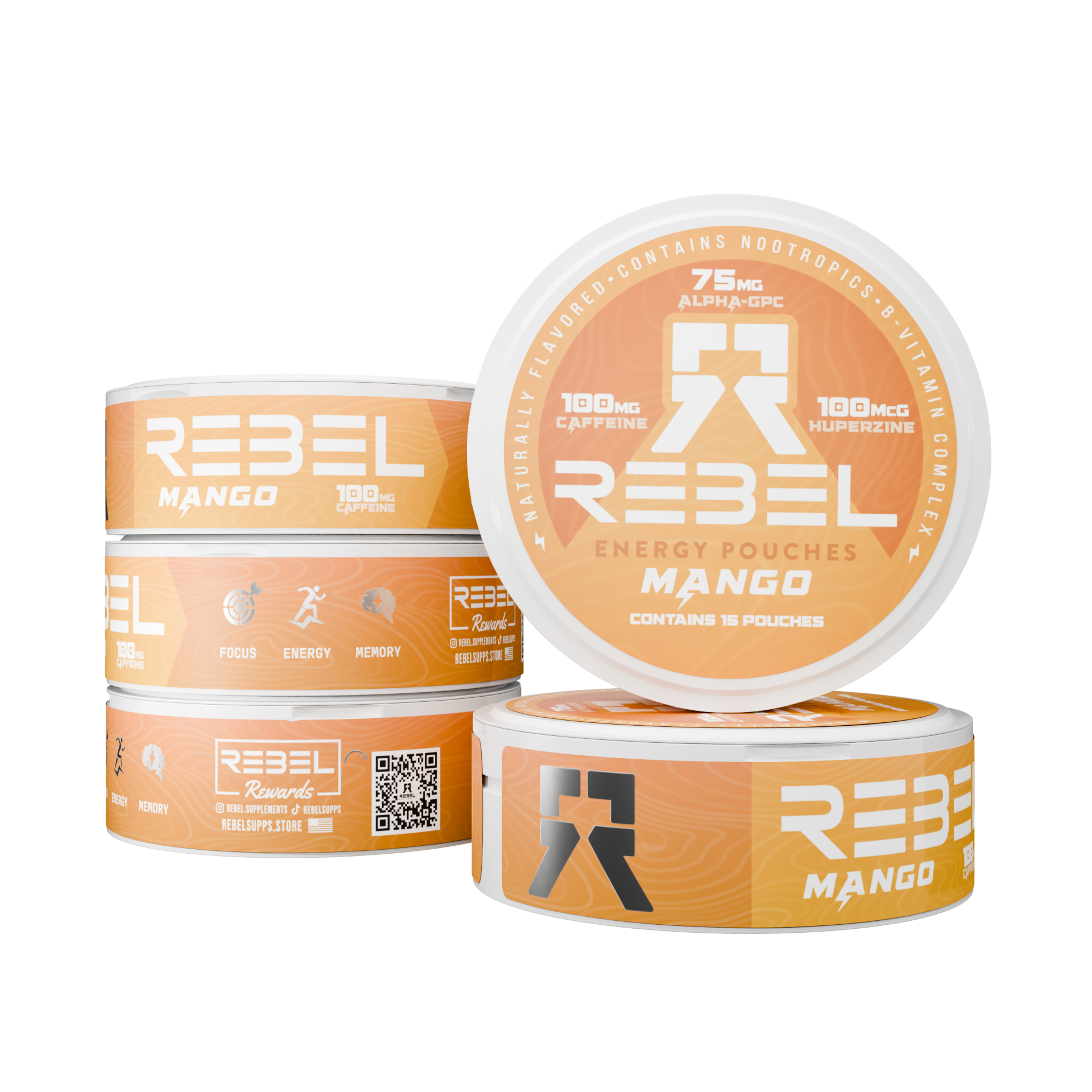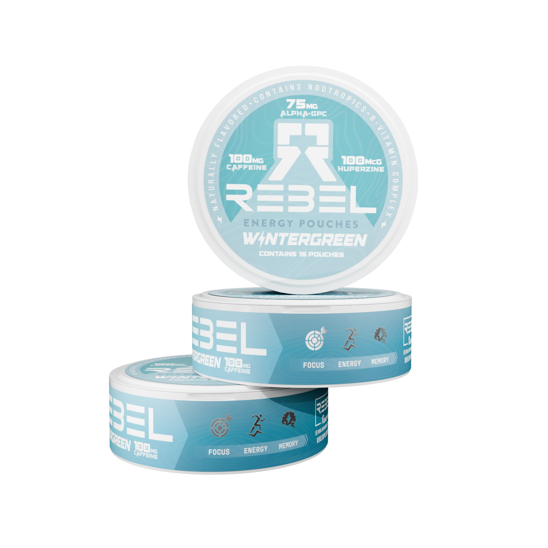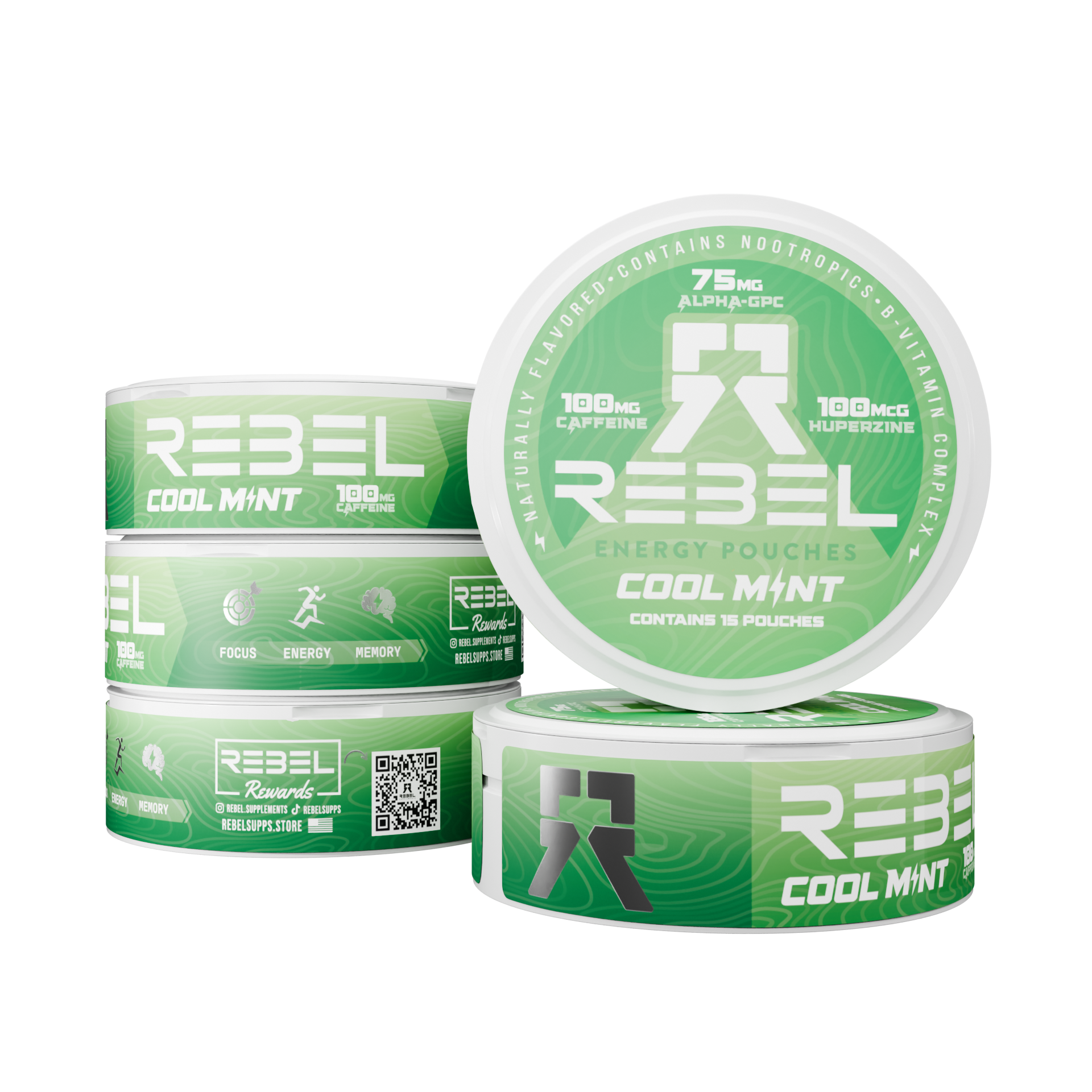 Rebel Energy Pouches provide a clean, sustained energy boost thanks to our premium formula. Each pouch contains a blend of powerful natural nootropics, including 100mg of Caffeine, Alpha-GPC, Huperzine, and 100% DV of B1, B6, and B9. This premium formulation supports your wellness goals by delivering energy in a healthier, more effective way.